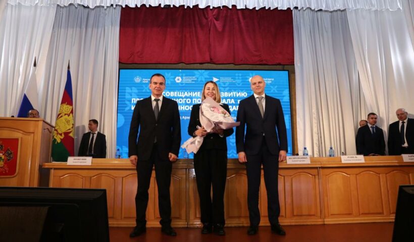 В рамках совещания состоялась церемония награждения руководителей ведущих предприятий региона. Высокую награду — медаль «За выдающийся вклад в развитие Краснодарского края» III степени — губернатор Краснодарского края Вениамин Кондратьев и заместитель министра промышленности и торговли России Алексей Беспрозванных вручили директору компании«Полипласт-Юг» Ирине Федотко.