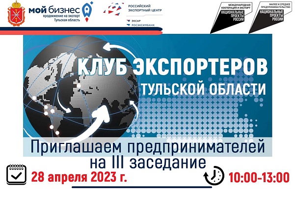 Уважаемые предприниматели, приглашаем вас принять участие в третьем заседании Клуба экспортеров Тульской области.