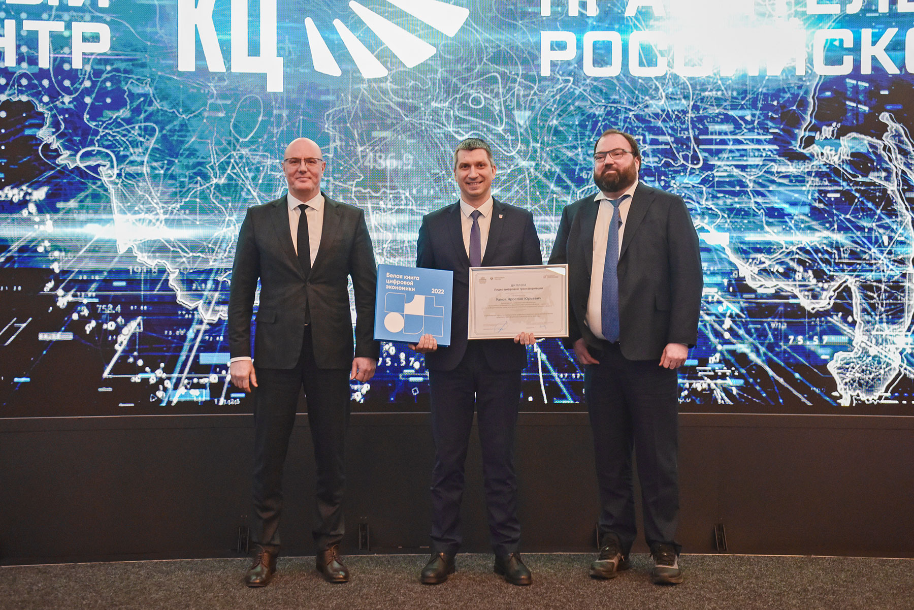 Накануне заместитель Председателя Правительства России Дмитрий Чернышенко и глава Минцифры Максут Шадаев отметили лучших руководителей цифровой трансформации федеральных и региональных органов власти, вручив им Белую книгу цифровой экономики за 2022 год.