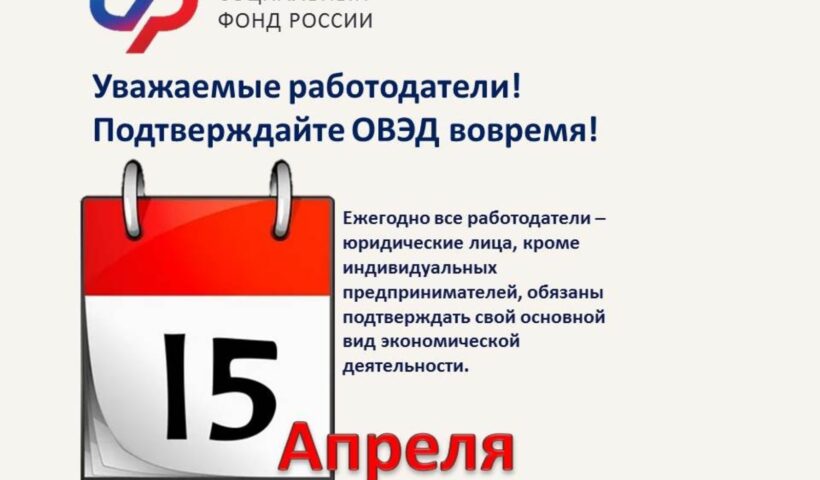 Отделение СФР по Тульской области напоминает, что в срок до 15 апреля 2024 года работодатели должны подтвердить основной вид экономической деятельности (ОВЭД).