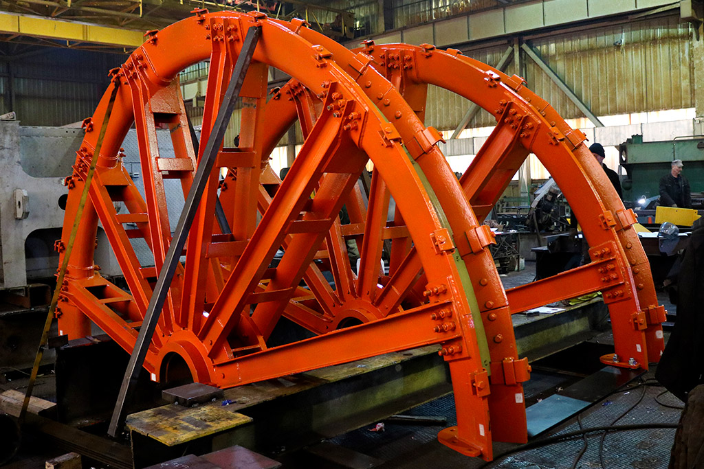 На завершающей стадии работы по производству шкива диаметром 4 м (ШКФ-4) .