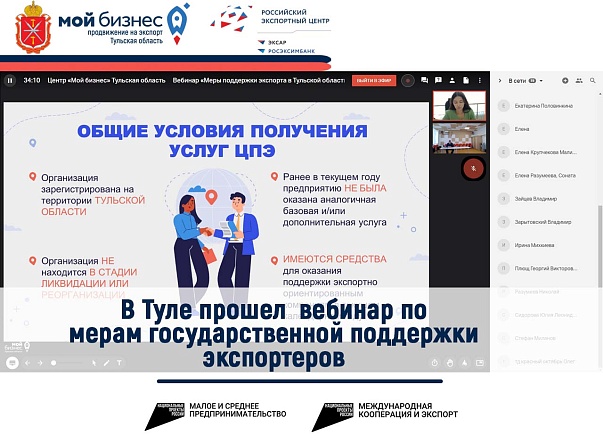 В Туле прошел вебинар по мерам государственной поддержки экспортеров