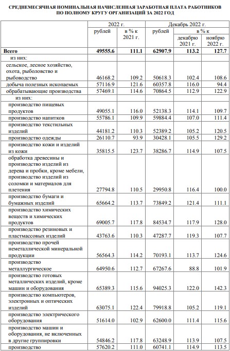 Наибольший рост показало производство компьютеров, электронных и оптических изделий. Средняя зарплата здесь в 2022 году составила 63 075,1 рубля. Это на 22,4% больше показателей 2021 года. По данным только за декабрь прошлого года средняя зарплата в этой отрасли достигла 79 918,8 рубля, что на 5,2% выше уровня предыдущего года и на 19,1% — ноября.