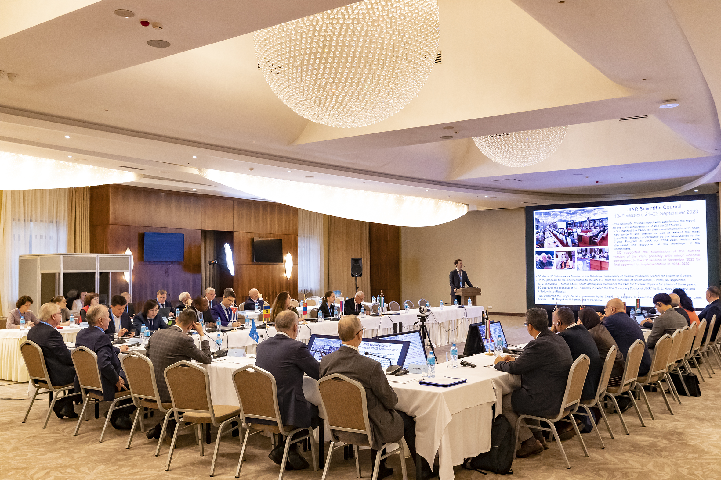 В своем докладе Григорий Трубников отметил успехи ОИЯИ в развитии международного сотрудничества. Было укреплено стратегическое партнерство с научными организациями ряда стран Азии, Африки и Латинской Америки. Состоялись сессии двусторонних координационных комитетов и отбор приоритетных проектов для совместной реализации с Министерством науки и технологий Китайской Народной Республики и Национальным советом по гуманитарным и естественным наукам и технологиям ( CONAHCYT , Мексика). Проведен ряд встреч и мероприятий, способствующих укреплению сотрудничества Института с научными организациями ЮАР , а также повышению уровня взаимодействия с Бразилией и Индией.