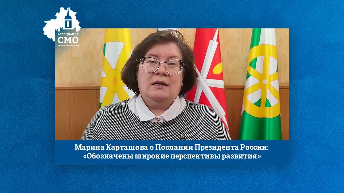 «В Послании, которое мы сегодня услышали, обозначены широкие перспективы развития страны на ближайшие шесть лет, — отметила член Совета при Президенте РФ по развитию местного самоуправления, председатель Ассоциации «Совет муниципальных образований Тульской области», глава Узловского района Марина Карташова. – Особый акцент президент сделал на сплочении и единстве нашего народа независимо от мировоззрения, политических и религиозных предпочтений. Слова, которыми президент завершил Послание, близки каждому из нас: «Россия нужна только нам и нашим потомкам как сильная и суверенная страна».