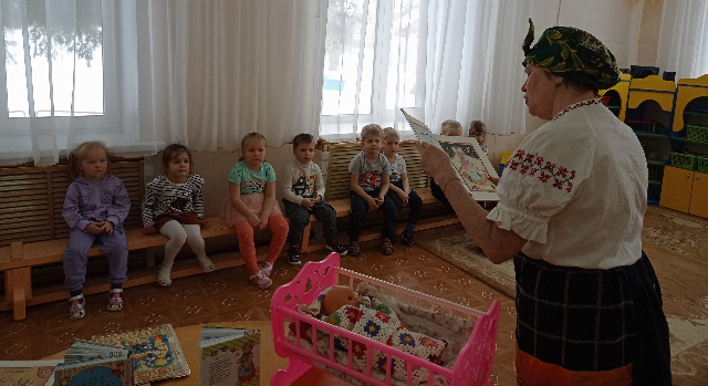 В рамках информационно-познавательного проекта «Народное искусство слова – детям» библиотекарь Авангардского сельского филиала Татьяна Ивановна Солдатова для детей средней группы детского сада провела фольклорный калейдоскоп «Колыбельные песни русского народа».