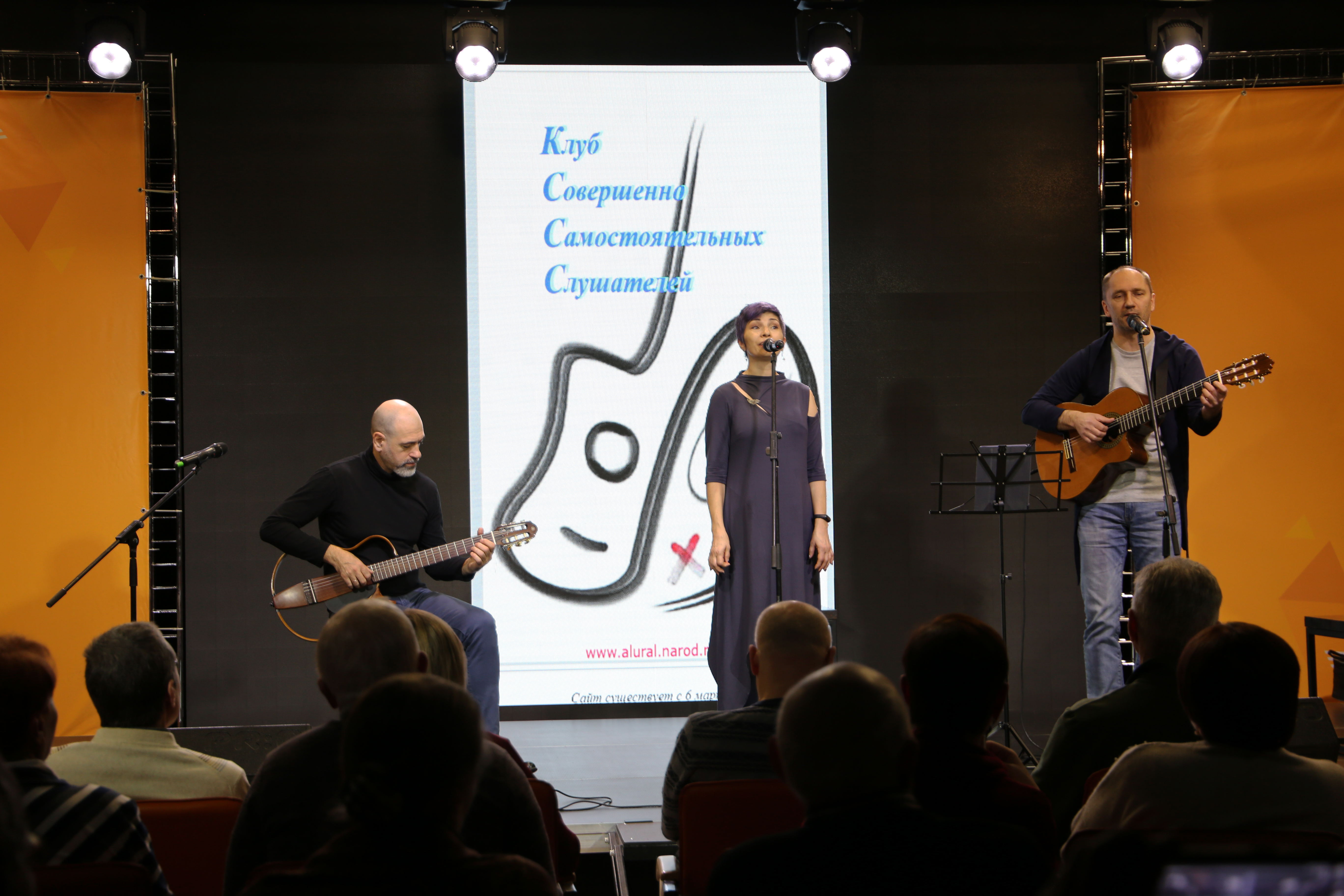 25 февраля в творческом пространстве «Девятка» любители авторской песни клуба «Самостоятельных слушателей» встречались с московскими исполнителями Дмитрием Беляковым, Ульяной и Дмитрием Григорьевыми.