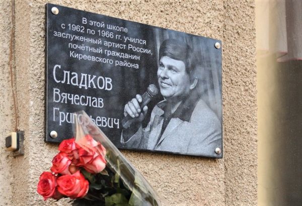 В честь заслуженного артиста Россия Вячеслава Сладкова в городе Липки Тульской области установили мемориальную доску.