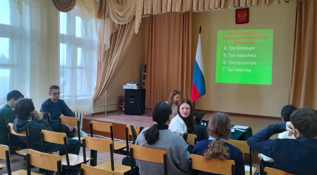Участники игры, разделившись на две команды «Юноши» и «Девушки» , соревновались между собой. Ребята обсуждая и совещаясь в команде, отвечали на вопросы разной сложности по литературе, истории, культуре, искусстве и музыке.
