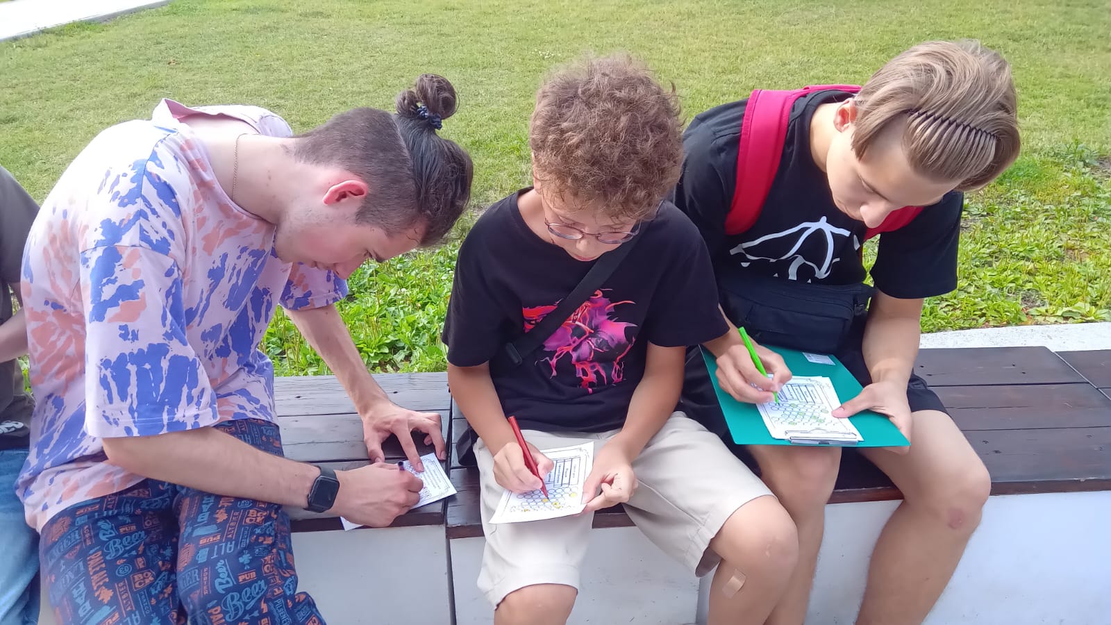 Для отдыхающих был проведен литературный квест, заключающийся в разгадывании кроссворда. По названиям литературных произведений участникам предстояло вспомнить фамилии авторов и вписать их в пустые графы. Затем из полученных результатов составить ключевое слово «дружба». Процесс оказался очень занимательным, интересным, и даже полезным. Все хорошо справились с заданиями и получили на память книжные закладки.