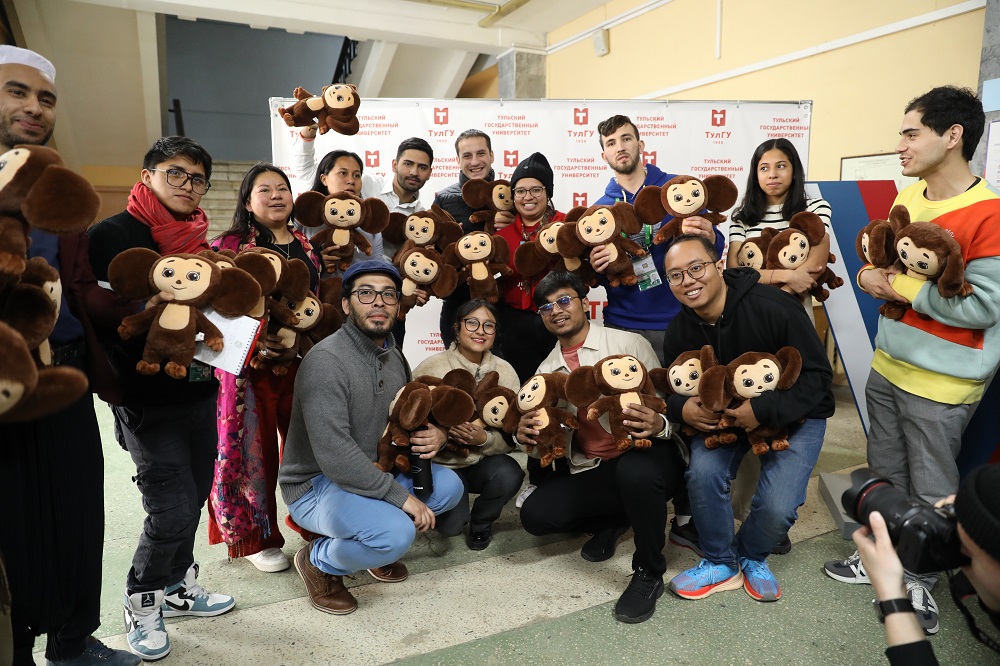 Иностранцы передали тульским коллегам мягкие игрушки — чебурашек. Персонаж, ставший символом Всемирного Фестиваля Молодёжи, будет прекрасным подарком для первых впервые голосующих ребят.
