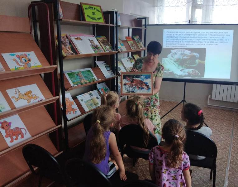 Библиотекарь напомнила о том, что 29 июля отмечается Международный день тигра и рассказала об интересных фактах из жизни тигров в дикой природе, об охране тигров в нашей стране. Ребята ответили на вопросы викторины, отгадали загадки, прочитали стихи современных поэтов о тиграх, поиграли в подвижные игры.