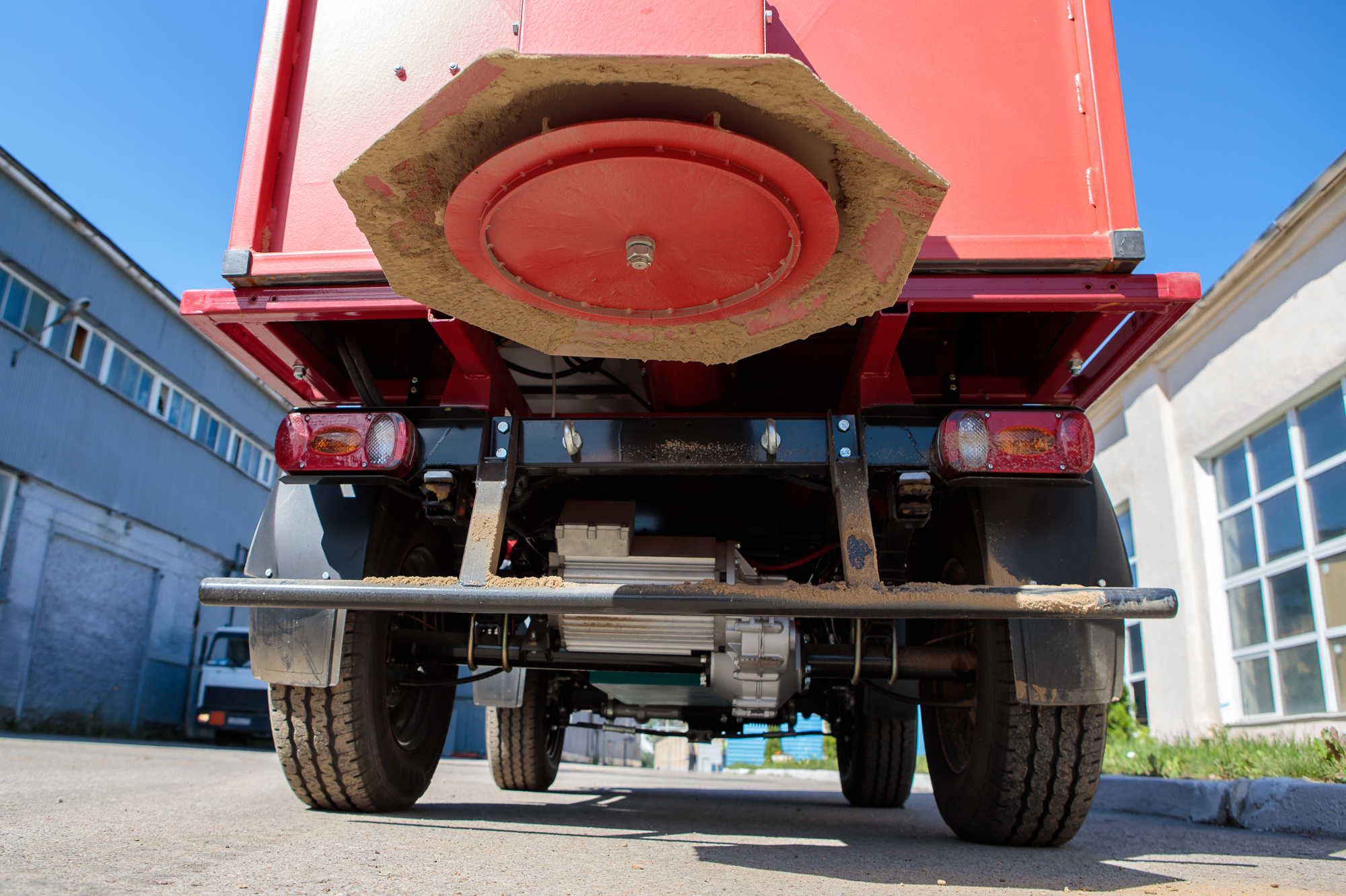 Коммунальный помощник предельно прост в эксплуатации: пескосоляная или реагентная смесь засыпается в бункер ковшом — специально смонтированная сетчатая «крыша» задерживает крупные фракции, которые могут повредить механизм. Затем водитель выбирает режим обработки дорожной поверхности — посыпка может быть более или менее интенсивной в зависимости от погодных условий.