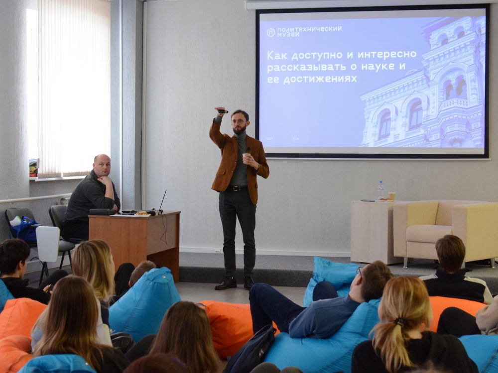 10 марта в рамках проекта «Цикл научно-популярных лекций для молодёжи «Научное кафе», поддержанного грантом Правительства Тульской области, студенты Тульского государственного университета встретились с кандидатом социологических наук, заместителем генерального директора по науке и образованию Политехнического музея, временно исполняющим обязанности генерального директора Политехнического музея, доцентом-исследователем Университета ИТМО Константином Сергеевичем Фурсовым.