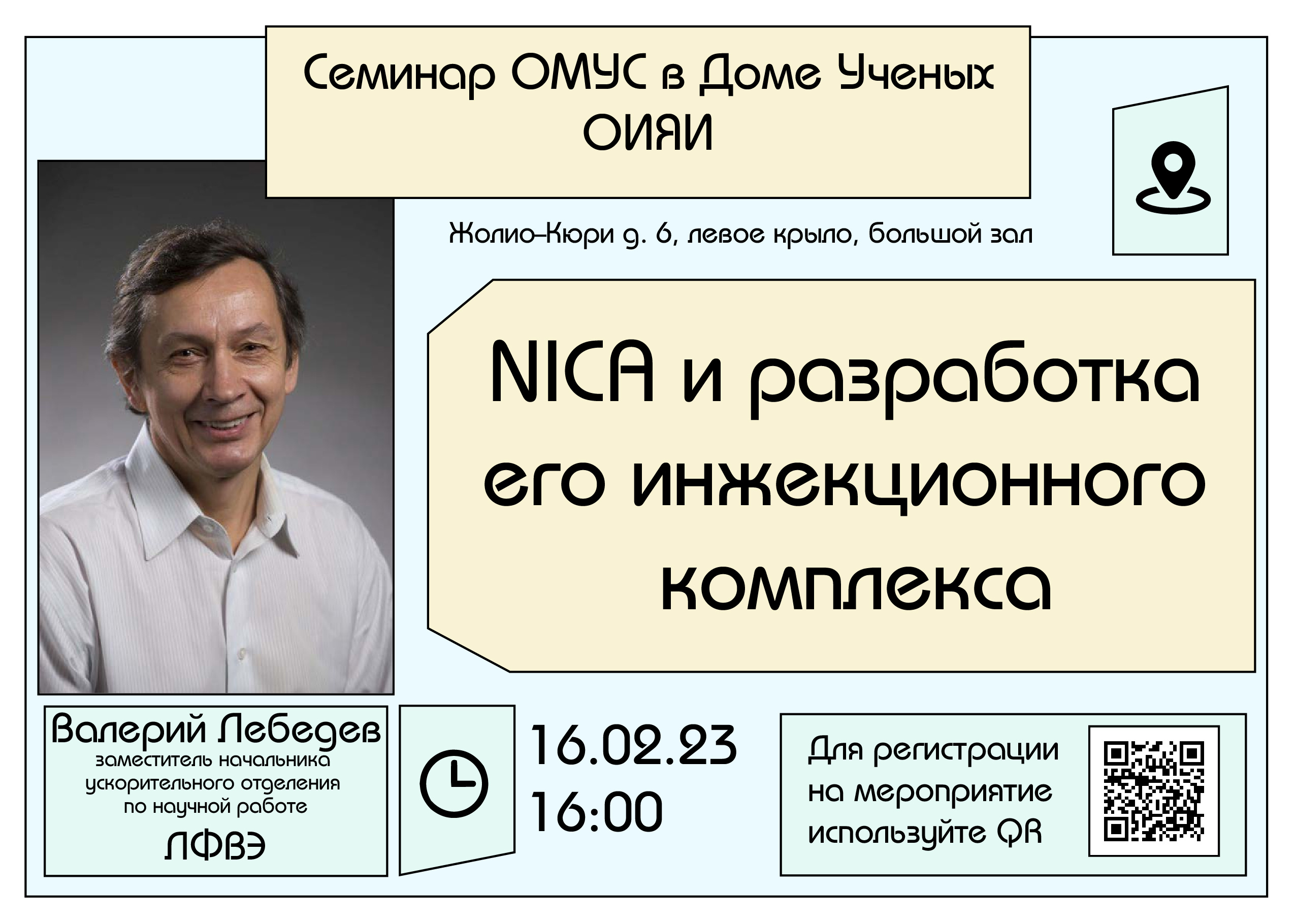 Валерий Лебедев (заместитель начальника ускорительного отделения по научной работе ЛФВЭ ) выступит с докладом «NICA и разработка его инжекционного комплекса».