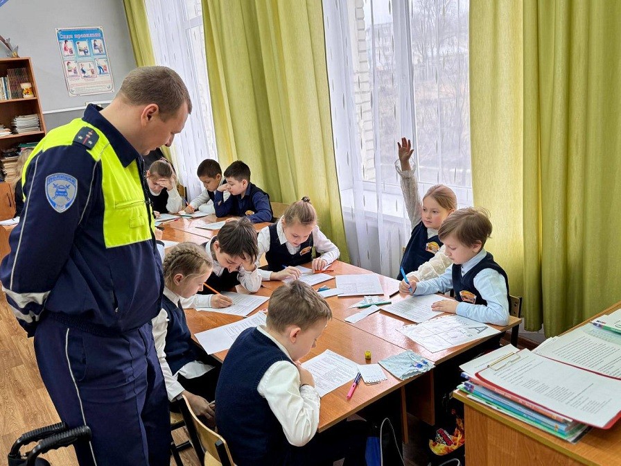 Сотрудники новомосковской Госавтоинспекции совместно с отрядом ЮИД провели открытый урок со школьниками начальных классов