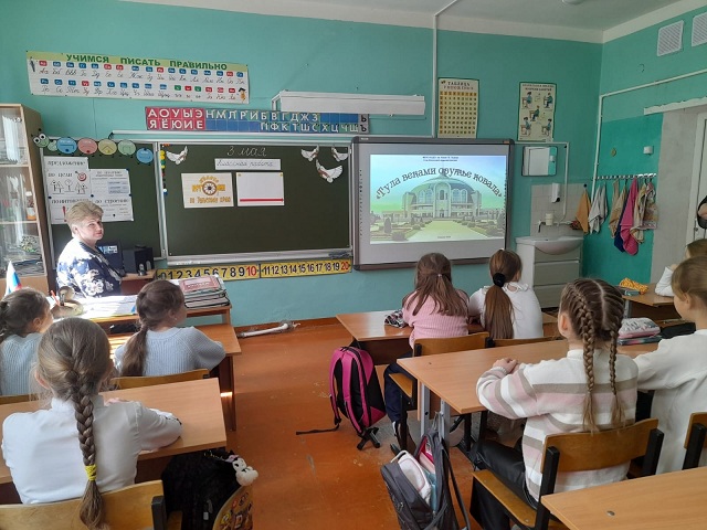 3 мая специалист Спас-Конинской сельской библиотеки Белогурова Надежда Викторовна в рамках библиотечного проекта по краеведческому воспитанию младших школьников «Колесо истории по Тульскому краю» провела для учащихся начальных классов сельской школы час краеведения «Тула веками оружье ковала».