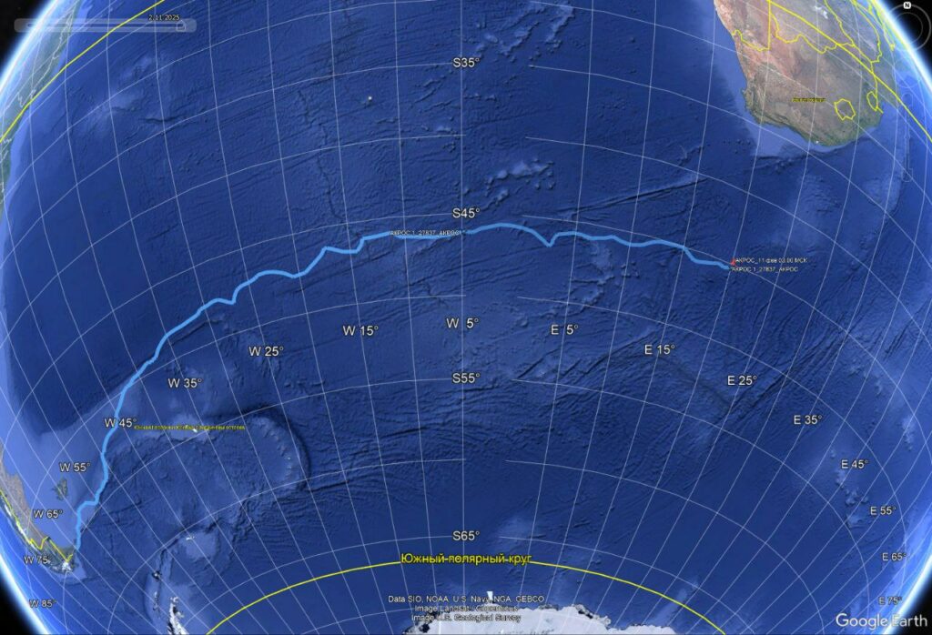 Впереди Индийский океан, до мыса Люин (Западная Австралия) 4,2 тысячи морских миль 200-дневного перехода до Австралии.