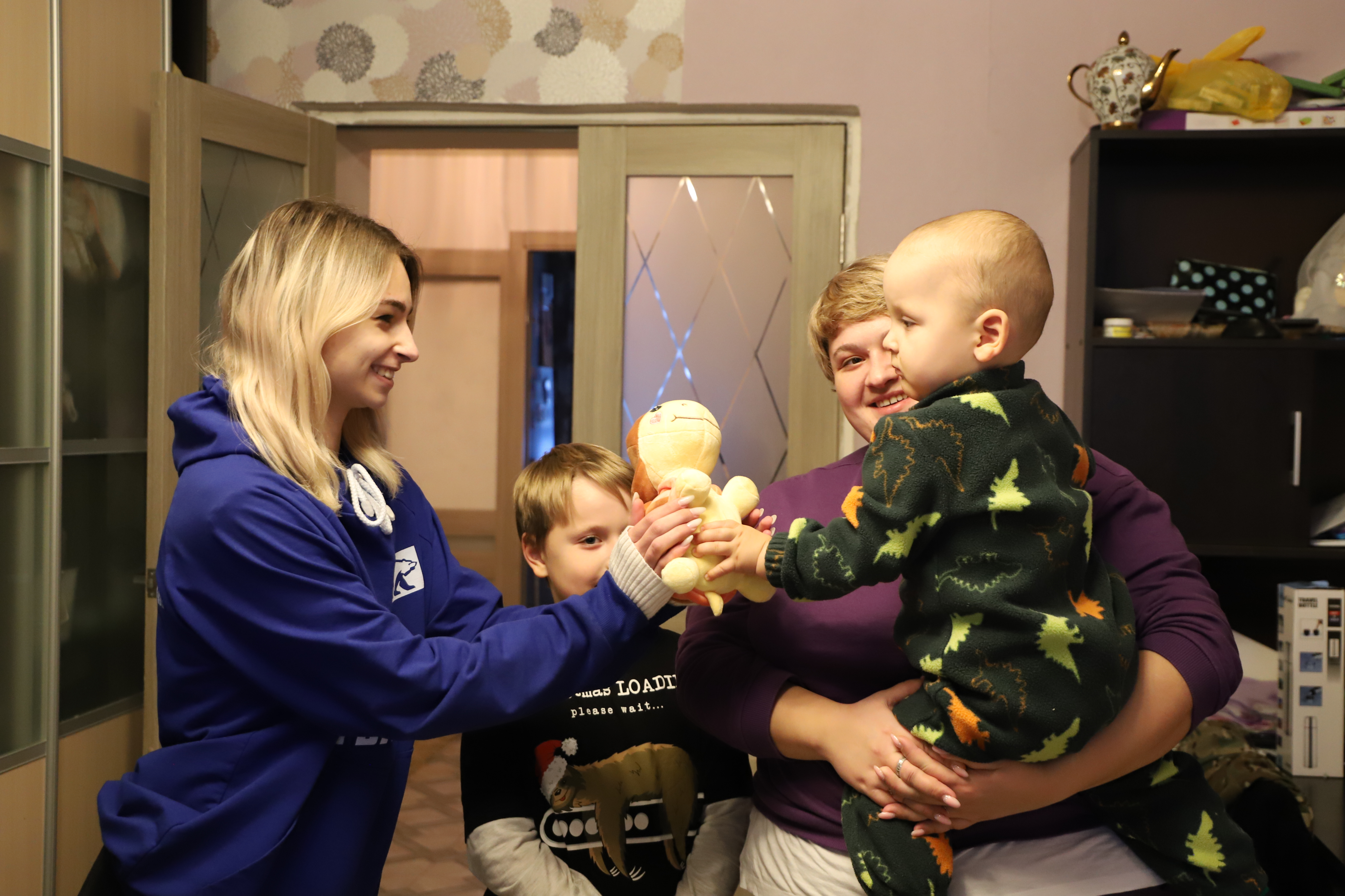 Добровольцы передали семье сладкие подарки, детские игрушки и канцелярские принадлежности.