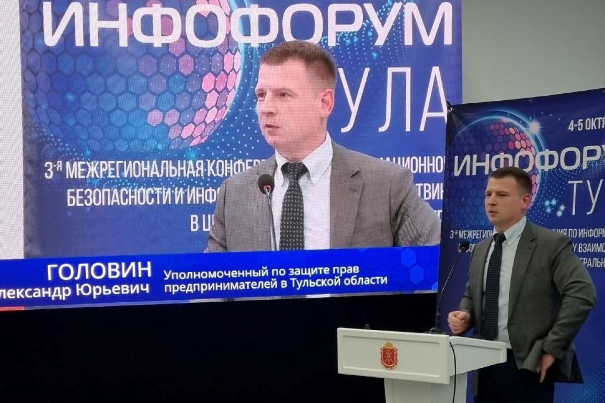 Тульский бизнес-защитник Александр Головин в своем выступлении затронул вопросы защиты малого и среднего бизнеса от преступлений, совершенных с использованием информационно-коммуникационных технологий.