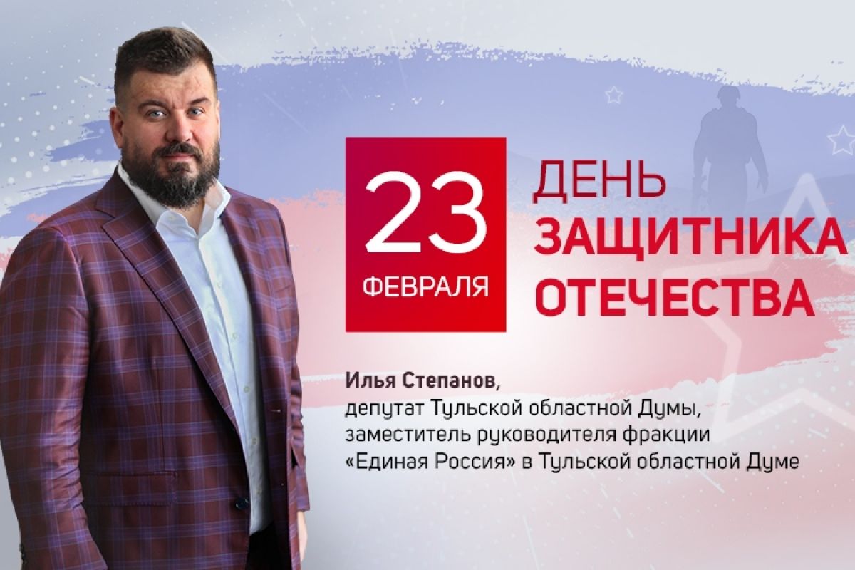 Депутат Тульской областной Думы, заместитель руководителя фракции «Единой России» Илья Степанов поздравляет с Днем защитника Отечества Дорогие жители Тульской области, поздравляю Вас с Днём защитника Отечества,