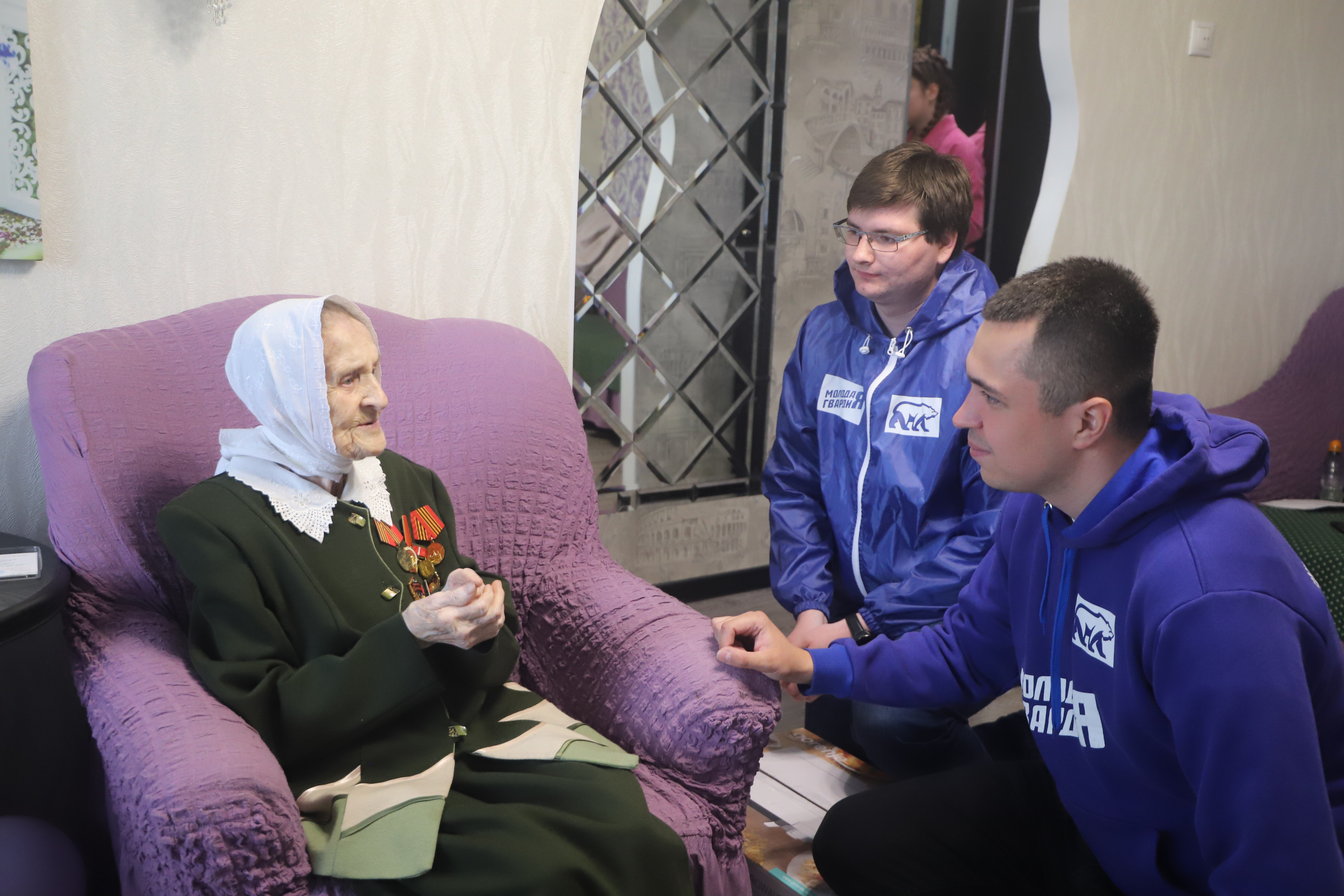 1 мая, в День праздника Весны и Труда, представители «Молодой Гвардии» навестили труженицу тыла, ветерана труда Хлестанову Марию Ефимовну.