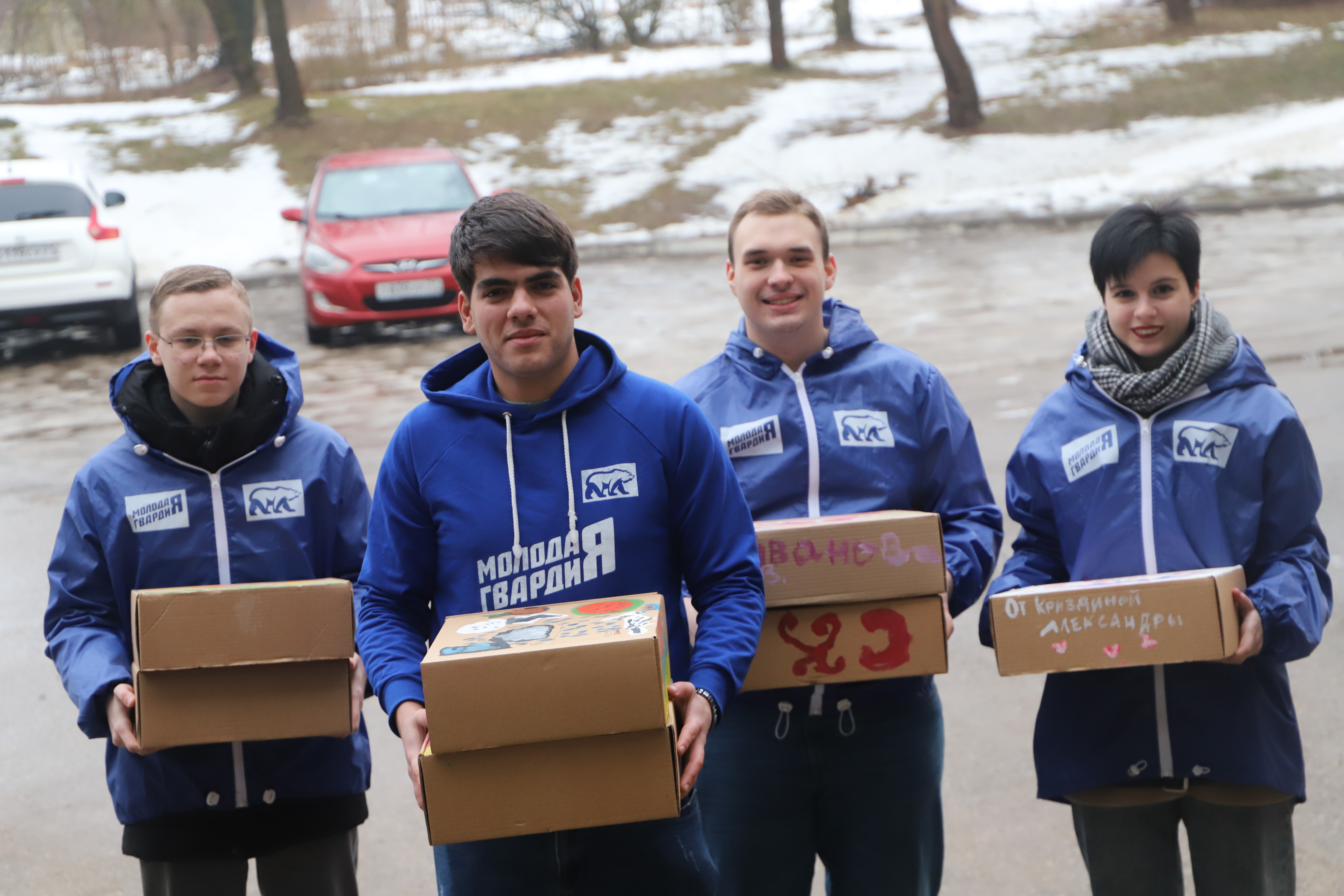 Сладкие угощения были упакованы в специальные коробки, которые подготовили дети Донбасса, оформив их рисунками и словами благодарности в рамках творческого проекта «Молодой Гвардии» «Мастерская добра».