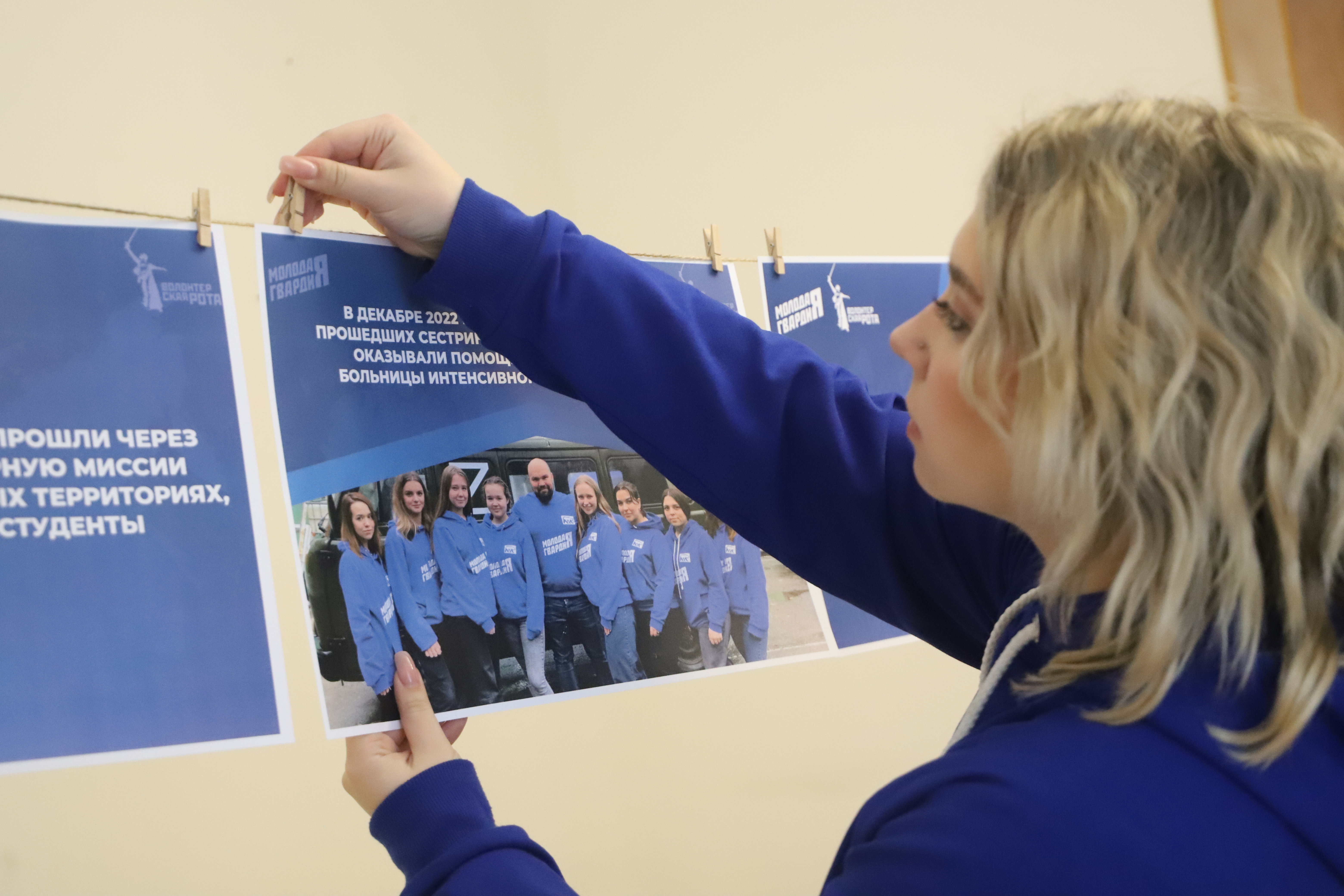 В среду, 25 января, представители «Молодой Гвардии» организовали выставку с фотографиями студентов со всей страны, которые участвуют в волонтерской и гуманитарной миссии на Донбассе и на других новых территориях.