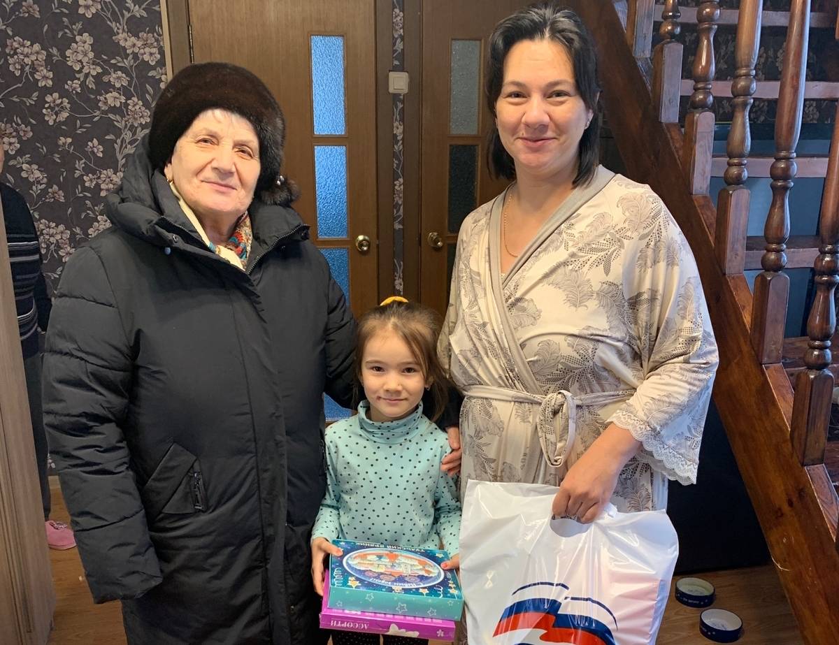 20 января секретарь первичного отделения №132 по Центральному району, староста поселка Петелино Татьяна Баранова в рамках партийного проекта «Крепкая семья» вручила подарки многодетной семье, в которой появился пятый ребенок.