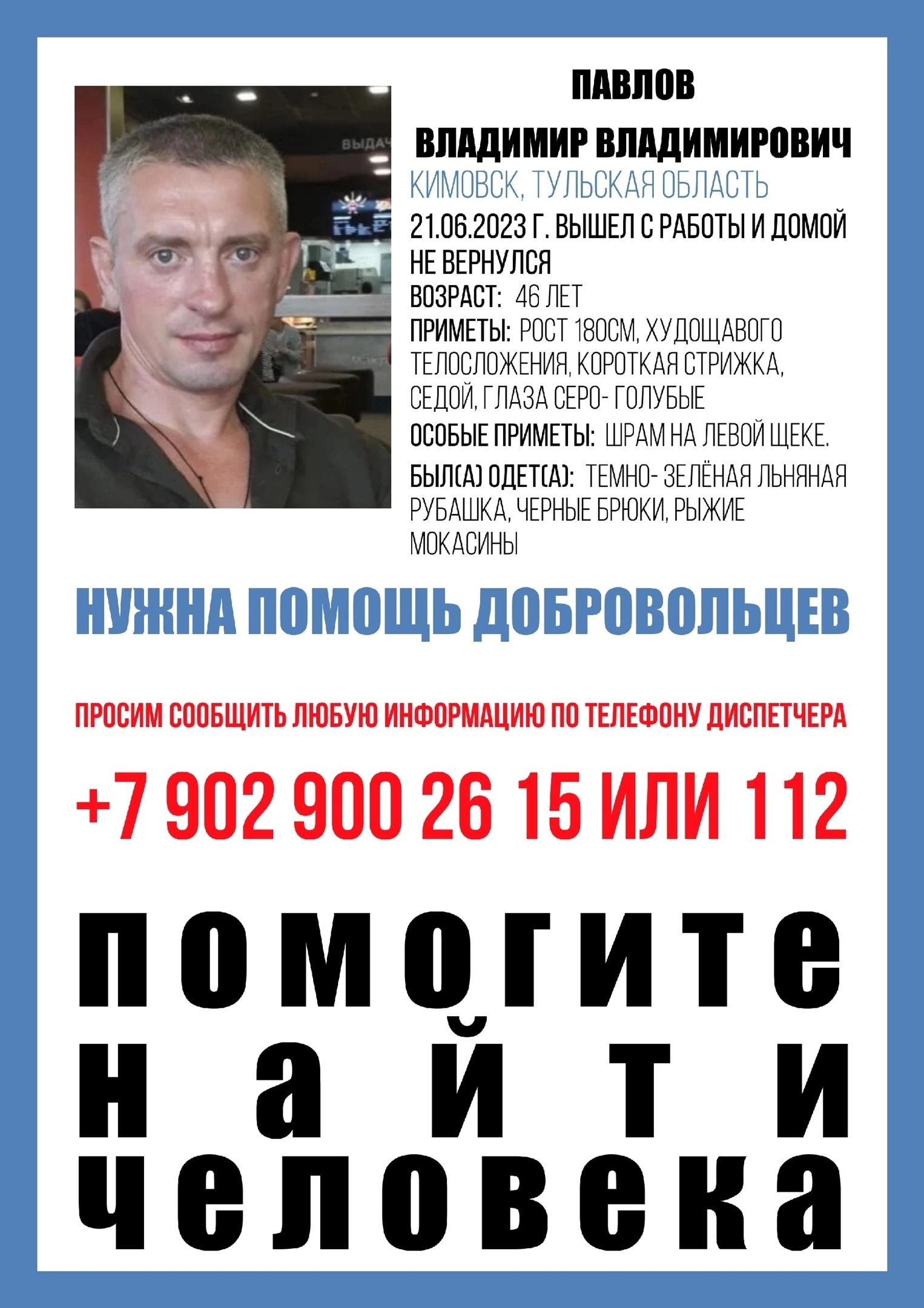 В Кимовске пропал 46-летний Павлов Владимир Владимирович. 21 июня вышел с работы, домой не вернулся. Нуждается в медицинской помощи.