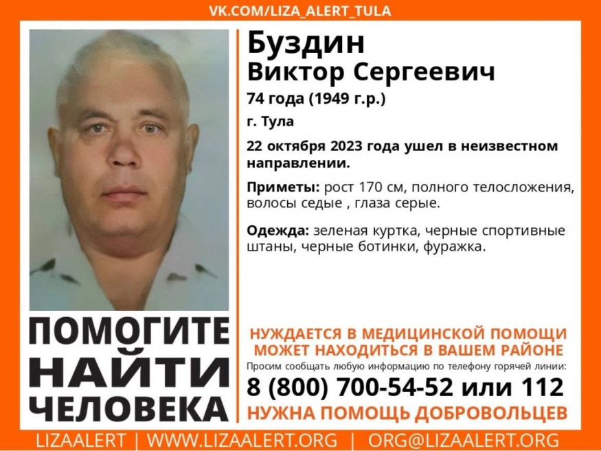 22 октября Виктор Сергеевич Буздин ушел из дома в неизвестном направлении.