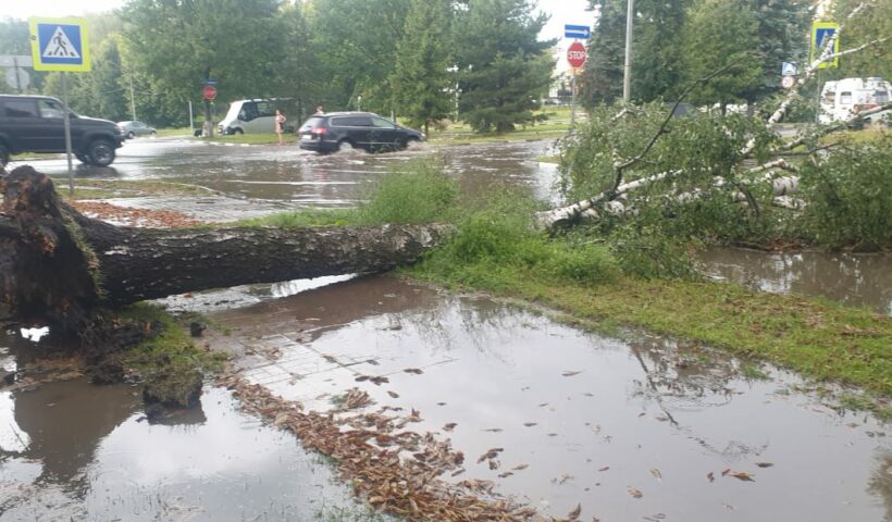 По информации очевидца, дерево рухнуло в районе ТЦ «Восход».