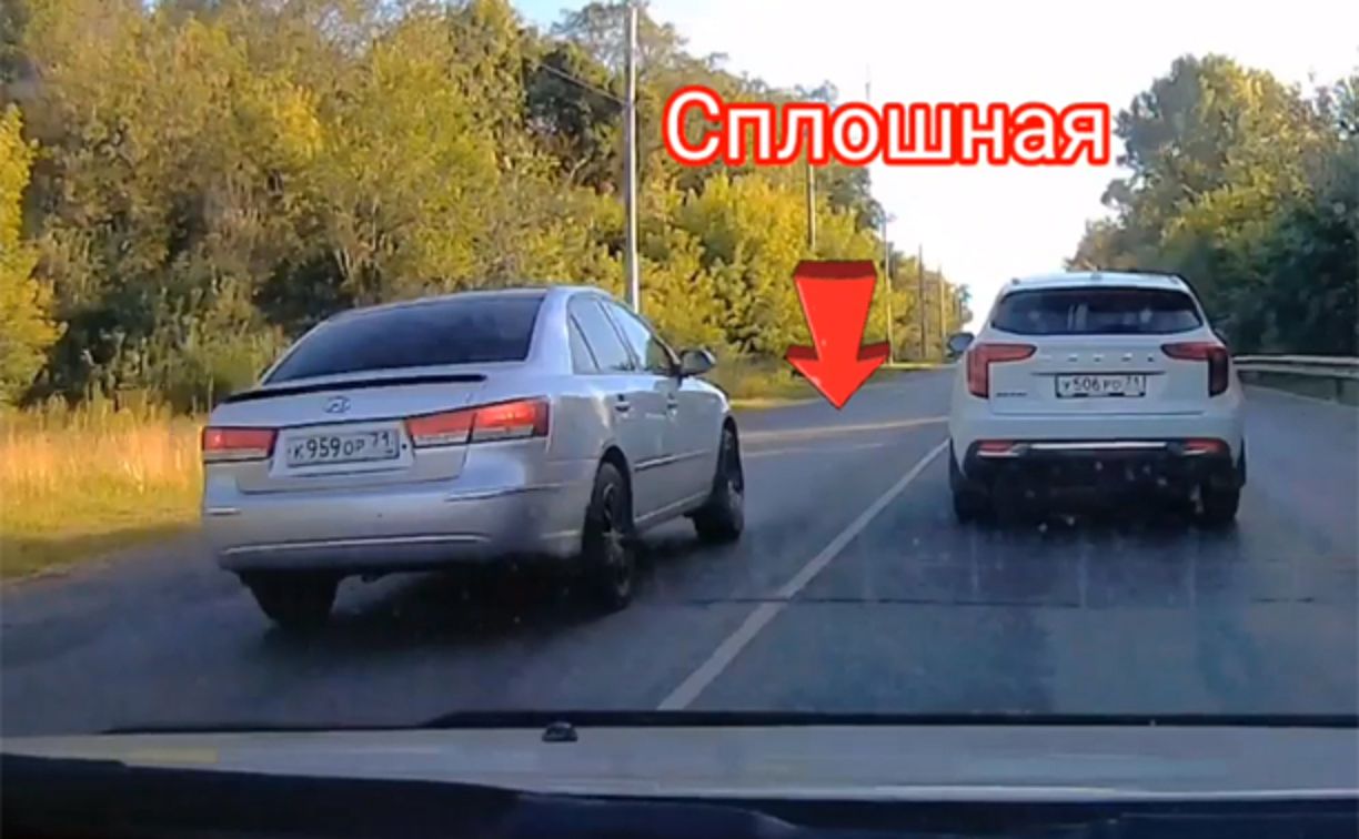 «Щекинское шоссе в районе „Долины Х“, на подъеме к городу Тула (54.129.342, 37.577620). Обгон с выездом на встречную полосу, с пересечением сплошной линии разметки автомобилем Hyundai. Государственный регистрационный знак к959ор71», — сообщил автор видео.
