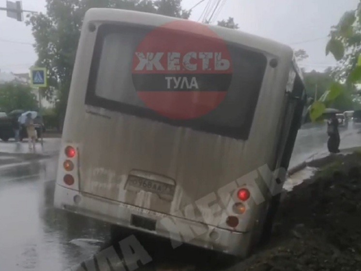 Пассажирский автобус съехал с проезжей части и застрял на обочине в Туле