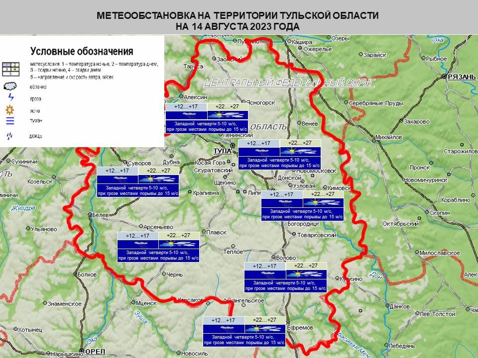 Погода в Туле 14 августа: дожди, ветер и до +27 градусов