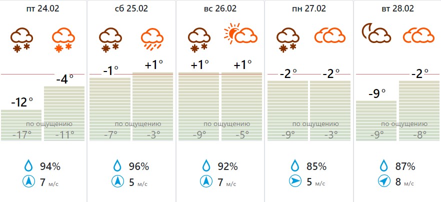 В понедельник погода начнет улучшаться: осадки иссякнут, а температура опустится до комфортных −2°С.