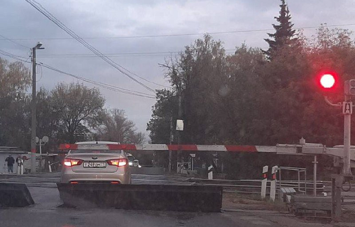 В Пролетарском округе Тулы водитель пытался проскочить на железнодорожном переезде, но застрял