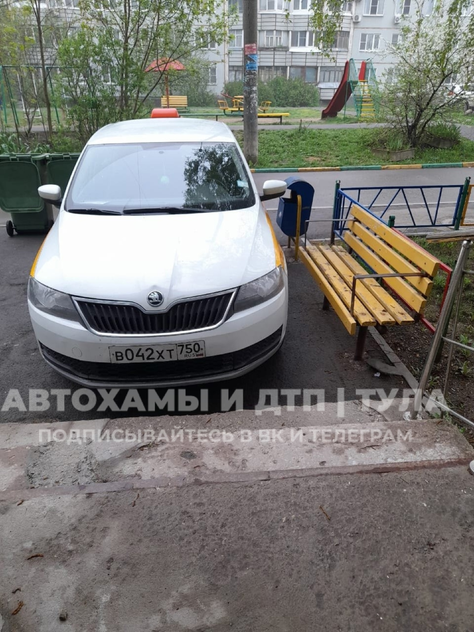 В телеграм-канале «Автохамы и ДТП | Тула» опубликовали снимки, сделанные на ул. Пузакова в Туле. На фото видно такси, которое припарковано прямо у ступеней подъезда многоквартирного дома. Дата и время съемки не указаны.