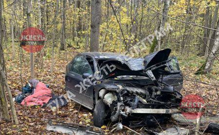В Тульской области машина съехала в кювет и врезалась в дерево