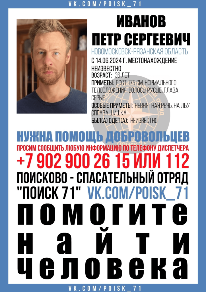 Петр Сергеевич пропал 14 июня 2024 года и с тех пор его местонахождение неизвестно.