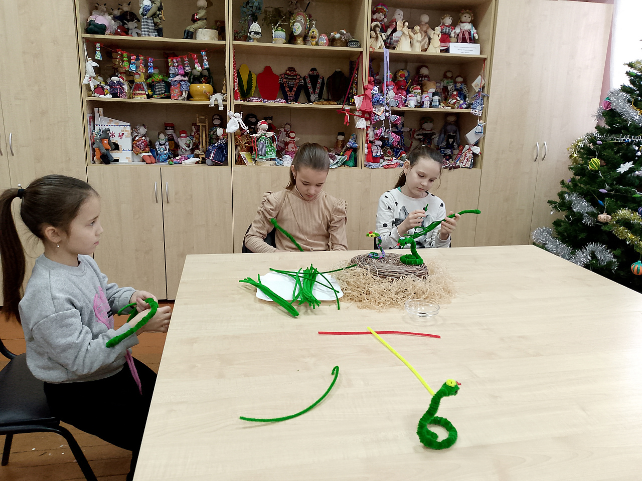 В доме культуры д. Львово МБУК «Новольвовский центр культуры и досуга» для участников клуба выходного дня «Затейник» прошел мастер–класс по изготовлению символа 2025 года – «Змейки» из синельной проволоки. С синельной проволокой ребята работали первый раз. Особенность данного материала в том, что она напоминает мохнатый шнур. Работать с этим материалом максимально просто и безопасно. Мероприятие было необычным и увлекательным, прошло в дружной атмосфере творчества и вдохновения. В результате получились яркие и оригинальные змейки. Занятие принесло детям массу положительных эмоций.