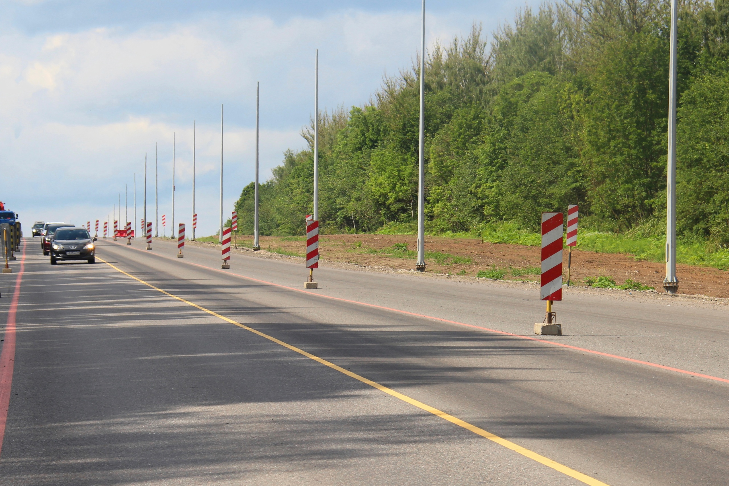 Верхний слой участка будет состоять из щебечно-мастичного асфальтобетона. Также в этом году планируют капитально отремонтировать мост через реку Волоть и расширить его проезжую часть.