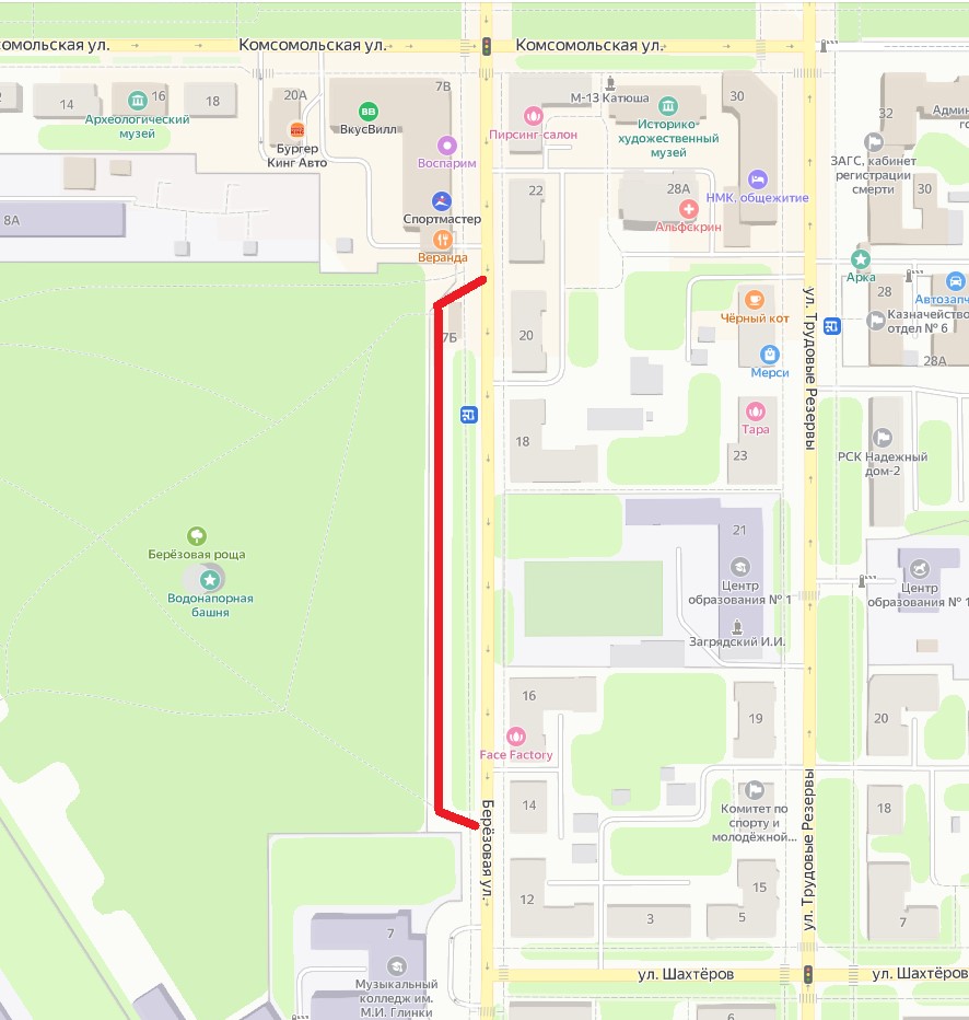 по ул. Березовой - территория парковки от д.7б до д.7.