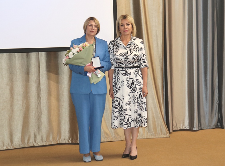 Глава города Тулы Ольга Слюсарева вручила Почетный знак муниципального образования город Тула «За вклад в развитие города Тулы» председателю контрольно-счетной палаты муниципального образования город Тула Наталье Фатеевой.