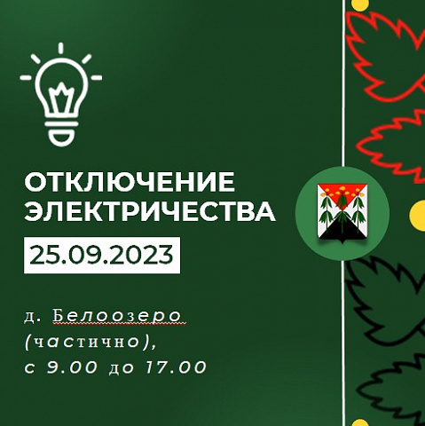 25 сентября, Кимовский район д. Белоозеро (частично), с 09.00 до 17.00, отключение электроэнергии.