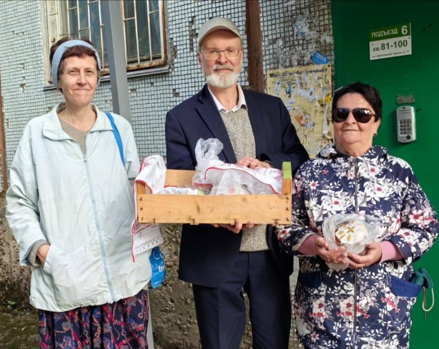 Прихожане трех православных храмов передали куличи для 26 семей ветеранов Всероссийского общества слепых, проживающих в квартале ДК ВОС в Щегловской засеке.