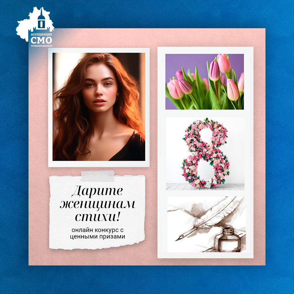 Ассоциация «Совет муниципальных образований Тульской области» объявляет старт онлайн конкурса «Дарите женщинам стихи!», приуроченного к празднованию Международного женского дня.