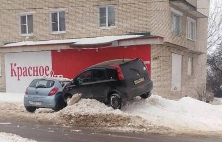 В Богородицке водитель припарковался на сугробе, чтобы уйти от столкновения