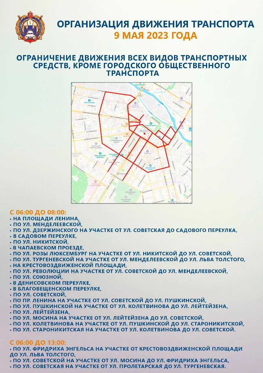 В Туле 9 мая из-за празднования Дня Победы будет ограничено движение и запрещена остановка и стоянка