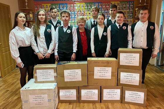 По инициативе депутата Тульской гордумы Ирины Симоновой школьники из ЦО №7 и их родители собрали новую партию гуманитарной помощи для мобилизованных земляков в зону спецоперации.